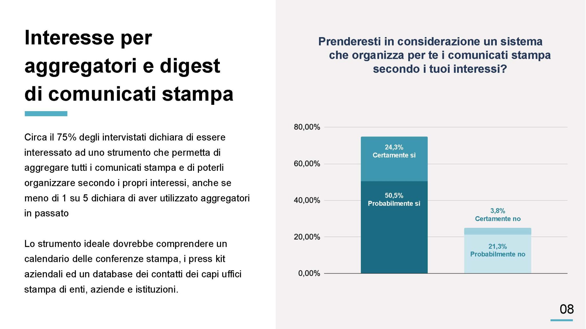 Dal canto loro i giornalisti chiedono nuovi strumenti capaci di aggregare e selezionare facilmente i comunicati stampa per risparmiare tempo e non perdere le notizie.