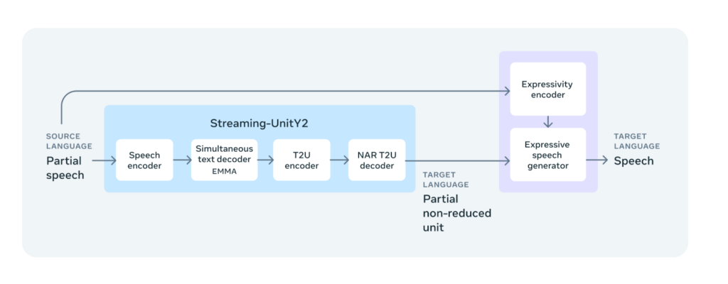 Secondo quanto affermano i ricercatori, Seamless è “il primo sistema disponibile al pubblico che consente una comunicazione espressiva interlinguistica in tempo reale” e comprende tre modelli, ovvero SeamlessExpressive, SeamlessStreaming, SeamlessM4T v2.