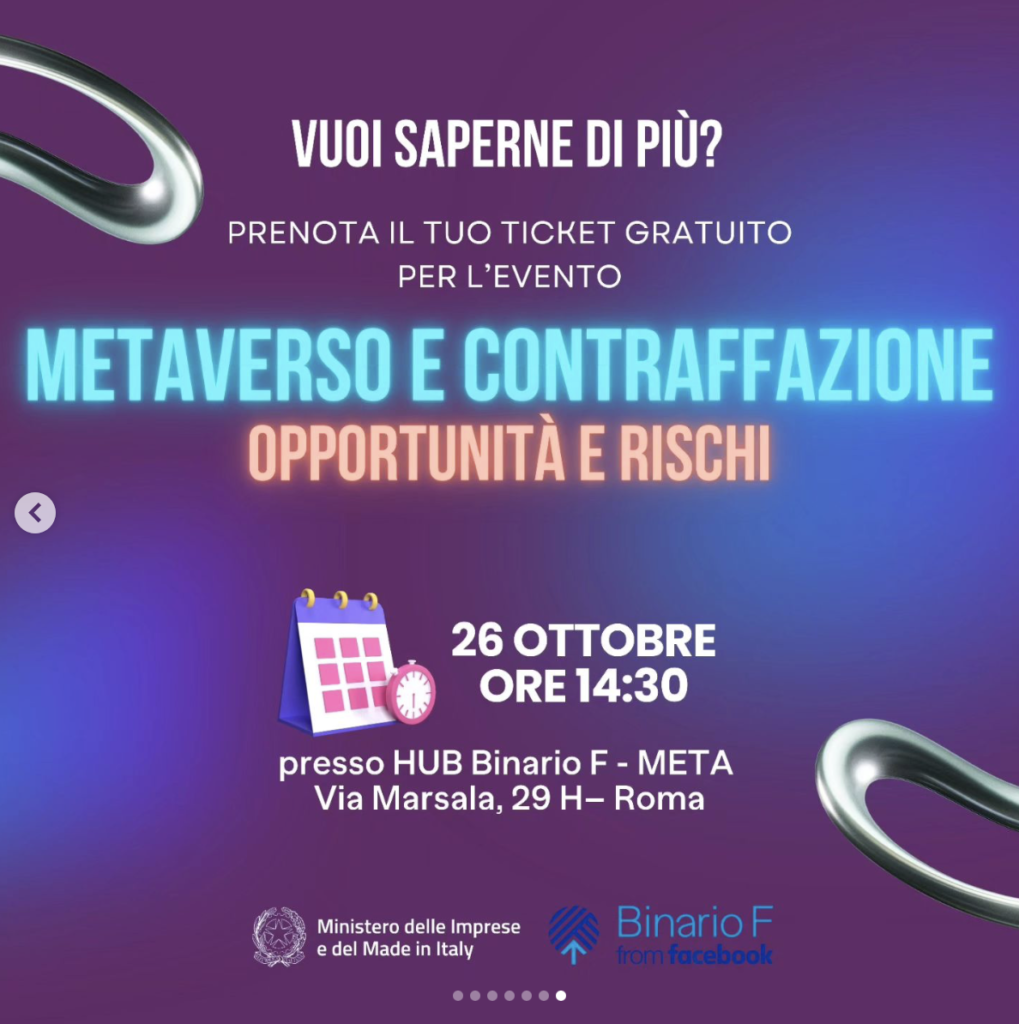 Un confronto di idee sul tema della contraffazione nel metaverso, sulle opportunità e rischi per le imprese in cerca di nuovi clienti, sul posizionamento delle Istituzioni nazionali ed europee con uno sguardo verso il futuro. Appuntamento oggi a Binario F a Roma alle 14:30.