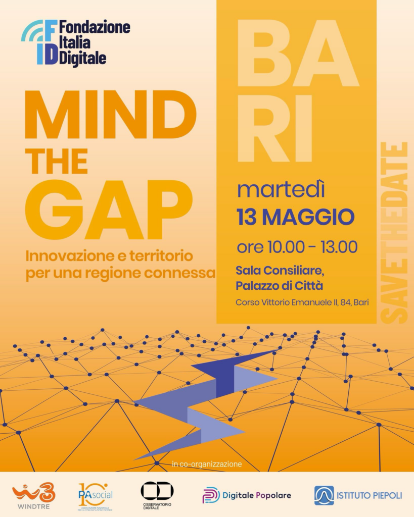 Francesco Nicodemo, Direttore editoriale di Fondazione Italia Digitale, dichiara: “Quella di Bari è la seconda tappa di quest’anno per ‘Mind The Gap’ e segna il terzo anno di un percorso di cui siamo davvero orgogliosi. Crediamo che la tecnologia, per essere davvero efficace, debba essere popolare: deve arrivare alle persone, ridurre le distanze e non aumentare le disuguaglianze. È su questa visione che continuiamo a costruire un dialogo tra territori, istituzioni e comunità.”