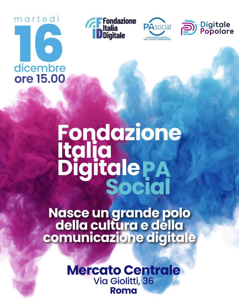 Sta per prendere il via una fase inedita per l’innovazione del nostro Paese. Martedì 16 dicembre, alle ore 15, negli spazi del Mercato Centrale di Roma (Via Giolitti 36), Fondazione Italia Digitale e PA Social lanceranno ufficialmente un nuovo polo dedicato alla cultura e alla comunicazione digitale.