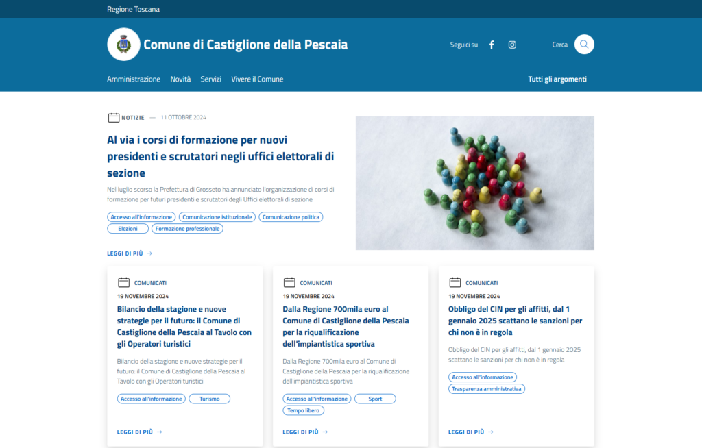 In arrivo il nuovo sito web istituzionale del Comune di Castiglione della Pescaia. Un aggiornamento, progettato e sviluppato nel rispetto delle linee guida di design imposte dall’Agenzia per l’Italia Digitale (AGID), che rappresenta un importante passo avanti verso una comunicazione più chiara, accessibile e moderna, conforme agli standard nazionali di trasparenza e innovazione digitale.