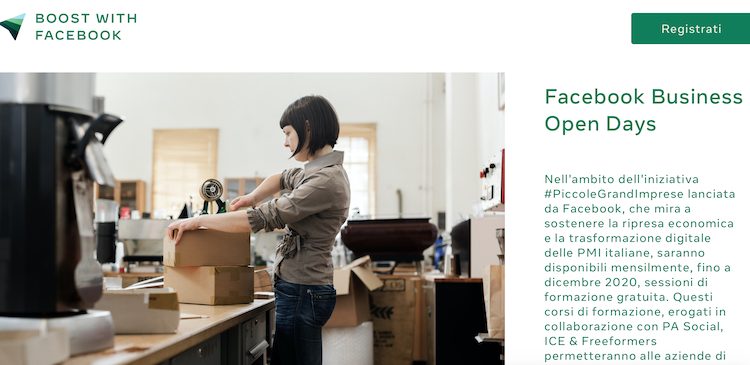 Conoscere e padroneggiare strategie e strumenti digitali adatti per le festività natalizie. Come? Basta seguire il Facebook Business Open Days in programma il 5 novembre dalle ore 10. L’evento online, che mira a sostenere la ripresa economica e la trasformazione digitale delle PMI italiane, rientra nell’ambito dell’iniziativa #PiccoleGrandImprese. I corsi di formazione sono erogati da Facebook Italia in collaborazione con PA Social, ICE & Freeformers. Per PA Social interviene Sandro Giorgetti, Esperto di Comunicazione Digitale e Responsabile Social Media Team Fondazione Marche Cultura.