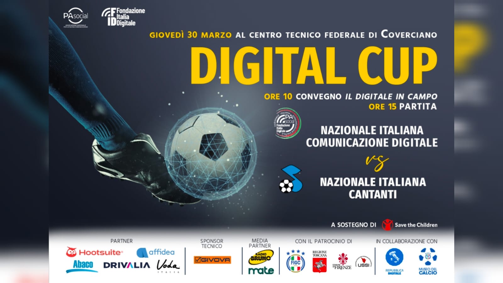 Digital Cup 2023, ci siamo. Tutto pronto per l’iniziativa in cui si parlerà di digitale, sport e salute ma non solo, perché non sarà soltanto una giornata di calcio giocato, con la partita tra Nazionale Italiana Comunicazione Digitale e la Nazionale Italiana Cantanti, l’iniziativa – nata dalla sinergia tra PA Social e Fondazione Italia Digitale – ma sarà anche l’occasione per approfondire temi legati alle nuove tecnologie in campo salute e sport a partire dalle ore 10 presso l’Aula Magna “Giuseppe Ferrari”, con il convegno “Il Digitale in Campo” previsto nel Centro Tecnico Federale di Coverciano, in Via Gabriele D’Annunzio, 138.